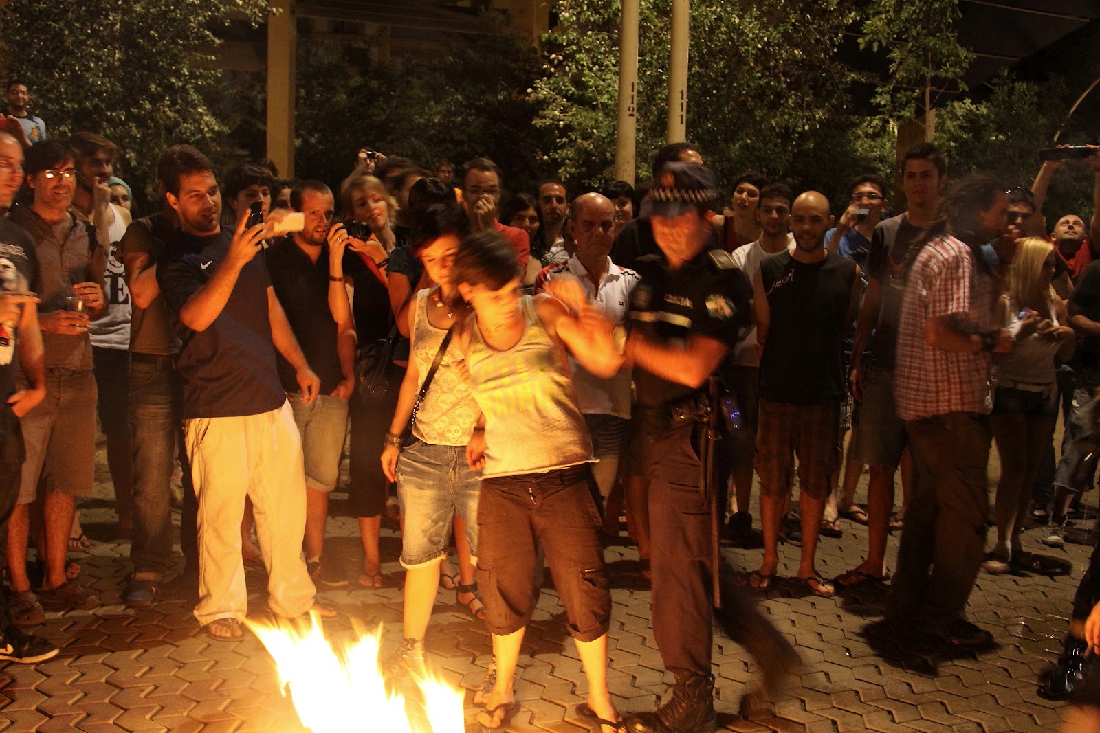 ... como el dispositivo policial no compartió esas dosis de buen humor, reiteraron las indicaciones a los bomberos de que procedieran a conectar las mangueras. Momento en el que la gente, viendo el absurdo se puso de pie y rodeo la fogata más de cerca, sin crispación, ni violencia. Alguna policía presente no hizo gala de especiales habilidades sociales a la hora de dirigirse a la ciudadanía a la que sirve y de la que cobra... |